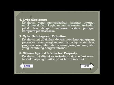 2. Jenis cybercrime ada 11 macam yaitu Unauthorized Access to Computer System and Service, Data Forgery, Cyber Espionage, Cyber Sabotage and Extortion, Offense against Intellectual Property, Infringements of Privacy dan Ilegal Contents.